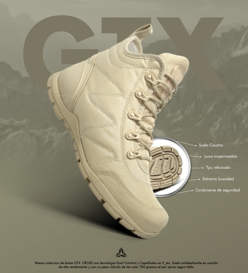 Botas Outdoor Cross GTX Caña media (Sin Cremallera lateral), Fabricadas en Lona impermeable huracán, Suela en caucho shock zero, cordoneras en Tpu, Plantilla se mi ortopédica, Peso: 650 Gramos el par aproximadamente según la talla, Con tecnología DUAL COMFORT, Plantilla en Eva y espuma de alta densidad para una frescura y comodidad optima!