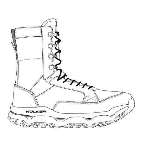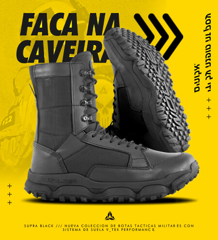 Botas Militares Wolker Performance Referencia: Supra Black, Fabricadas en 100% Microfibra V_tex de alta resistencia, Nueva suela V_tex Ultra Max Performance, Altura de caña de 18 cm, Cierre lateral, Lona impermeable Lafayette, Ojáleles en acero inoxidable, Peso aproximado de 1 par según la talla: 850 Gramos / Plantilla interior en Silicona de alta resistencia anti hongos.