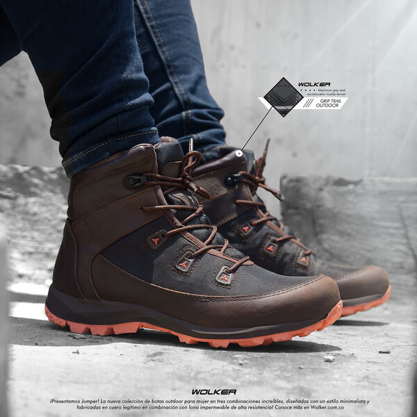 Botas Outdoor Jumper Caña media, Fabricadas en Cuero, Lona impermeable huracán, Suela en caucho shock zero, Capellada en Cuero legitimo de alta densidad, cordoneras en plastisol, Plantilla se mi ortopédica, Peso: 650 Gramos el par aproximadamente según la talla.
