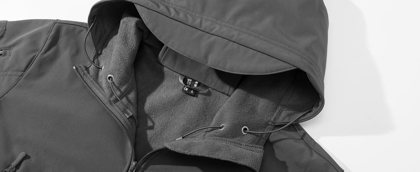 • La tela softshell con forro polar interior cálido. La capa exterior es semi impermeable y resistente al viento, mientras que la capa interior te mantiene caliente todo el día.