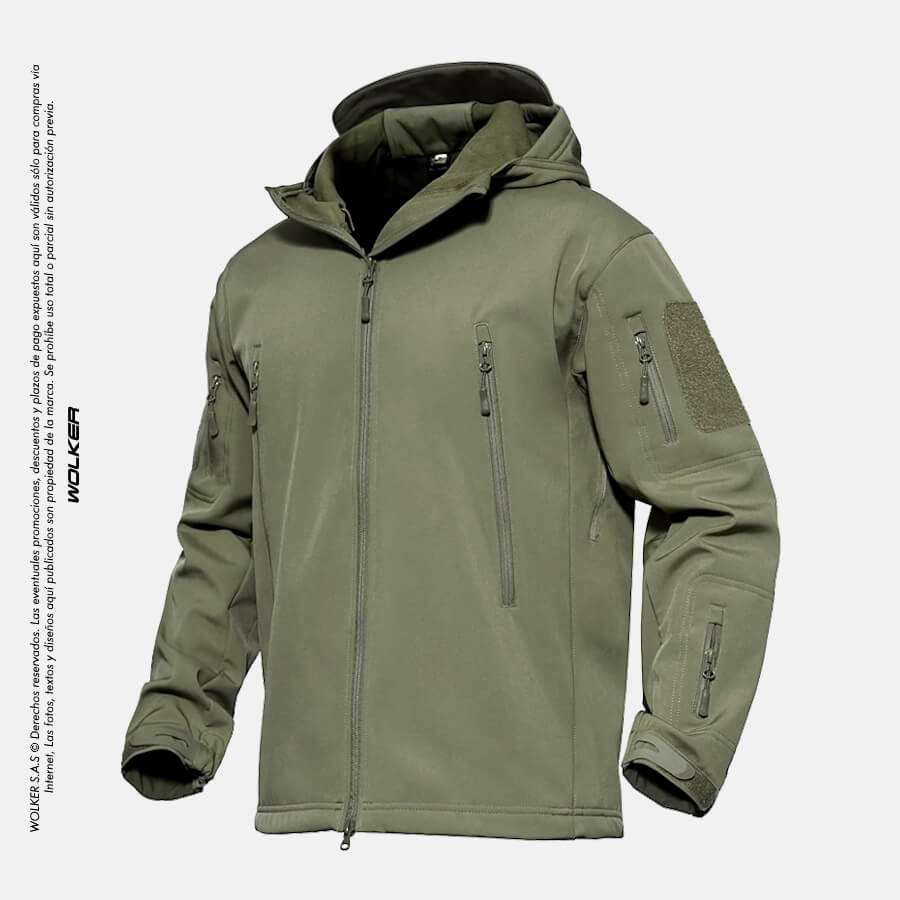 Chaqueta Tactica Verde con capucha, Multifuncional Semi impermeable.
