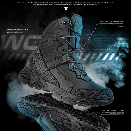 Delta GX / Botas Militares con cierre lateral / Tactical caña Media.