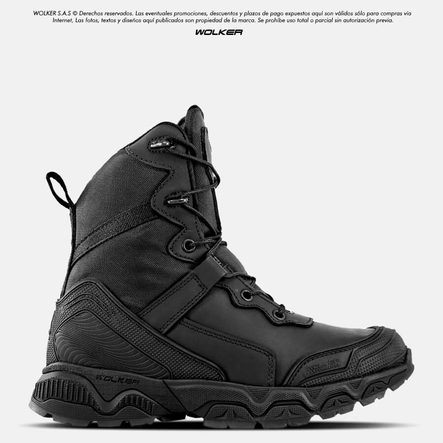 Absorcion de Choques en puntera y talon, Gracias a estos refuerzos inyectados en TPU de alta dureza, Te ofrecen proteccion y agarre para todo tipo de situacion, Caña media de 18 cm Aproximadamente (Varia segun talla), Cuero Hidrofugado de alta resistencia y 100% genuino, Suela clasica Wolker Vulcanizada en caucho natural, Cremmallera lateral, Forro interior anti transpirable y plantilla de comfort inyectada en EVA.